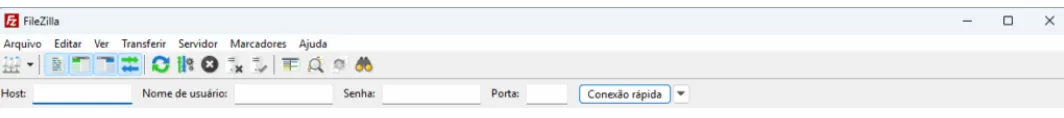 Para conectar o seu site usando esse mecanismo basta inserir os seus dados na barra que fica no topo da interface do FileZilla e clicar no botão Conexão rápida.