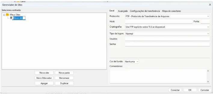 - Selecione o protocolo de transferência SFTP, para garantir a segurança dos dados transmitidos;