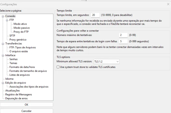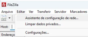 - Acessar o FileZilla e clicar em Editar e, em seguida, em Configurações;