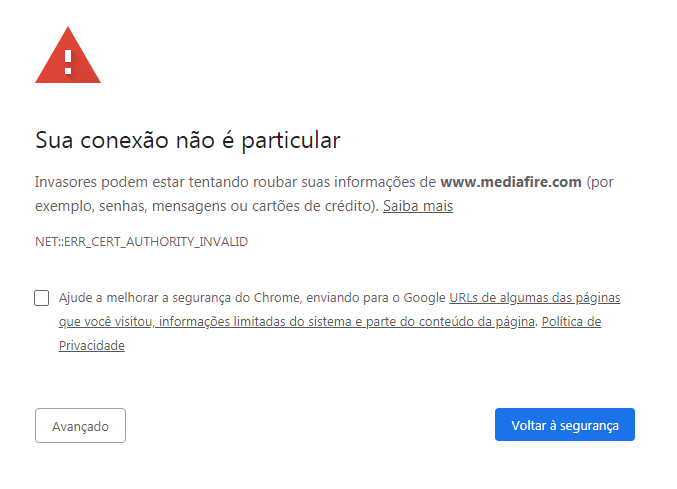 O que é o erro NET::ERR_CERT_AUTHORITY_INVALID?