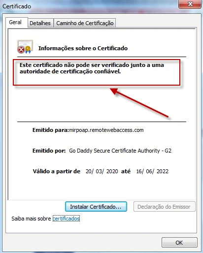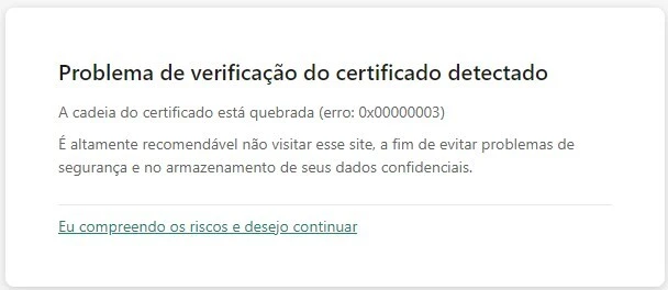 Cadeia de certificação quebrada