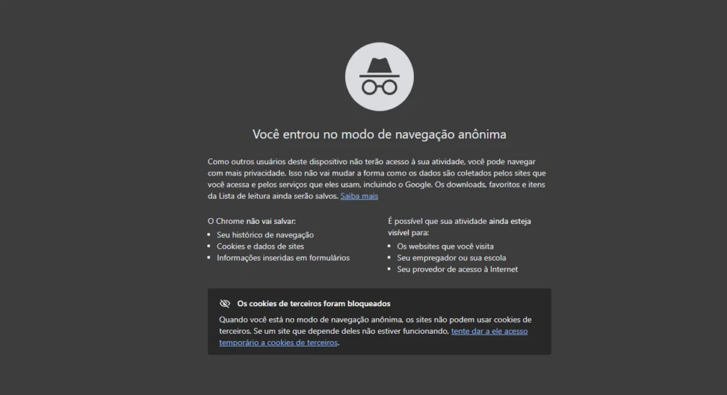 Isso força o navegador a ignorar sessões e cookies temporários, eliminando interferências causadas por dados salvos. Muitas vezes, erros momentâneos são apenas resultado de conflitos de cache ativo.