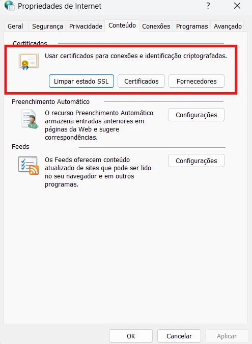 - No Windows, limpe o estado SSL em Opções da Internet > Conteúdo > Limpar estado SSL.