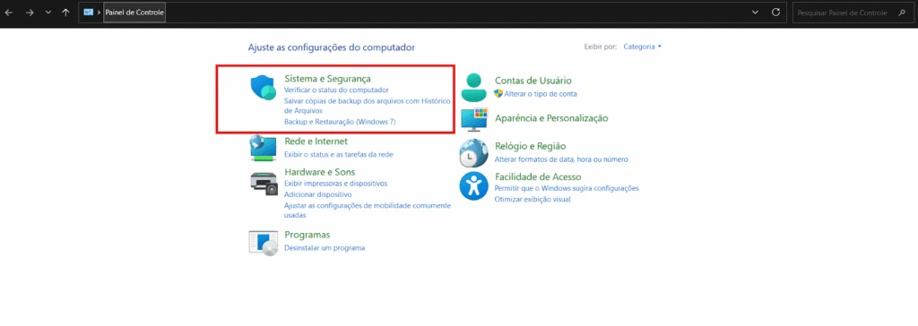 - No Windows vá até Painel de Controle dentro do menu iniciar;