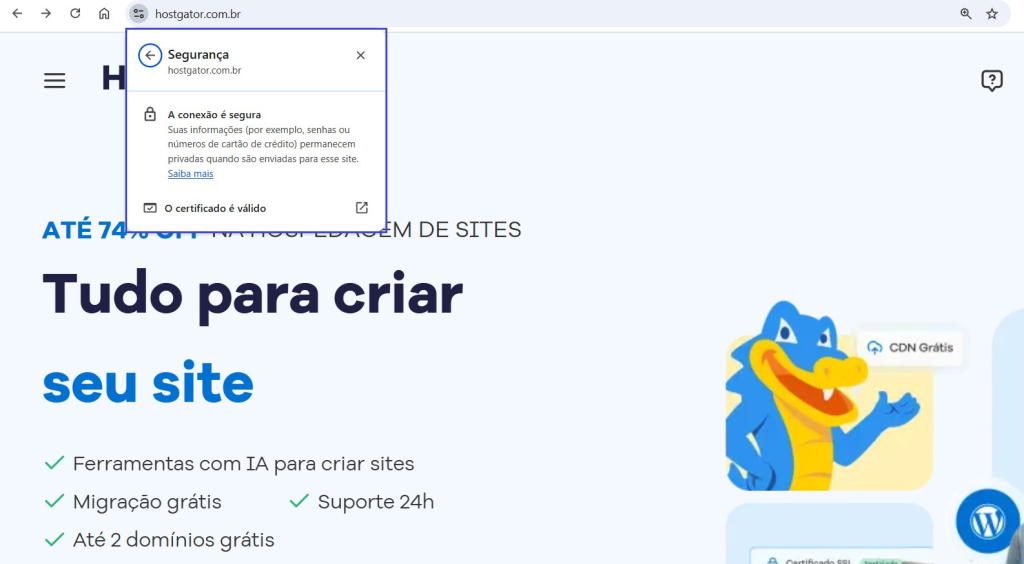 - Verifique o certificado do site: se você for o administrador do site, acesse o painel de hospedagem e confira se o SSL está ativo e com validade em dia.