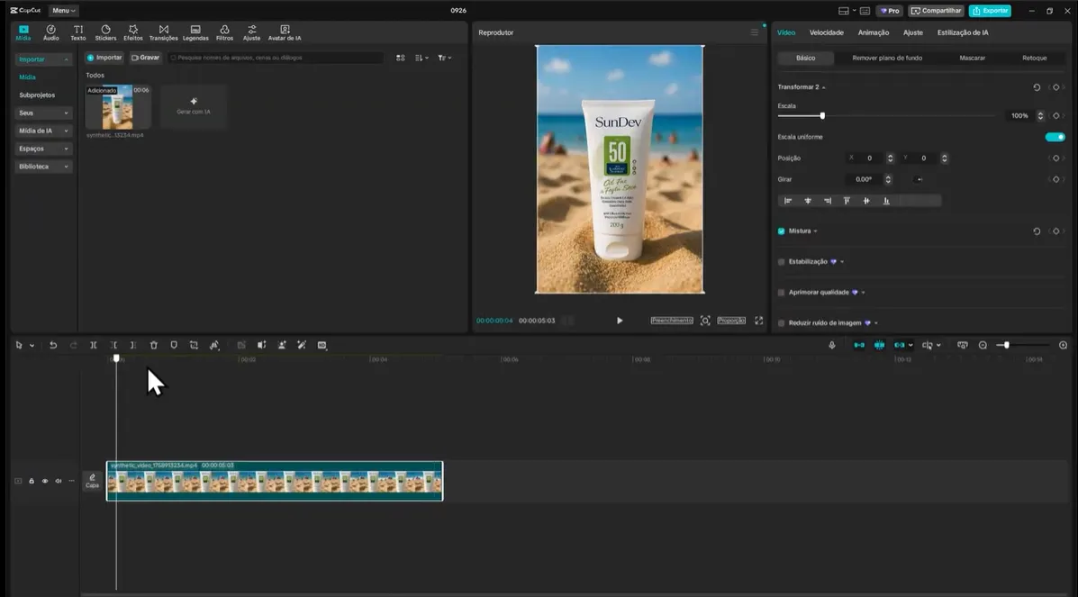 Com a voz e a animação prontas, o último passo é a montagem. Use o CapCut, uma ferramenta gratuita e intuitiva, para juntar imagem e áudio: