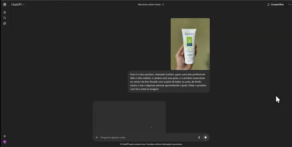 Agora é hora de transformar sua foto simples em uma imagem digna de estúdio. Você pode fazer isso diretamente com o ChatGPT com geração de imagens.
