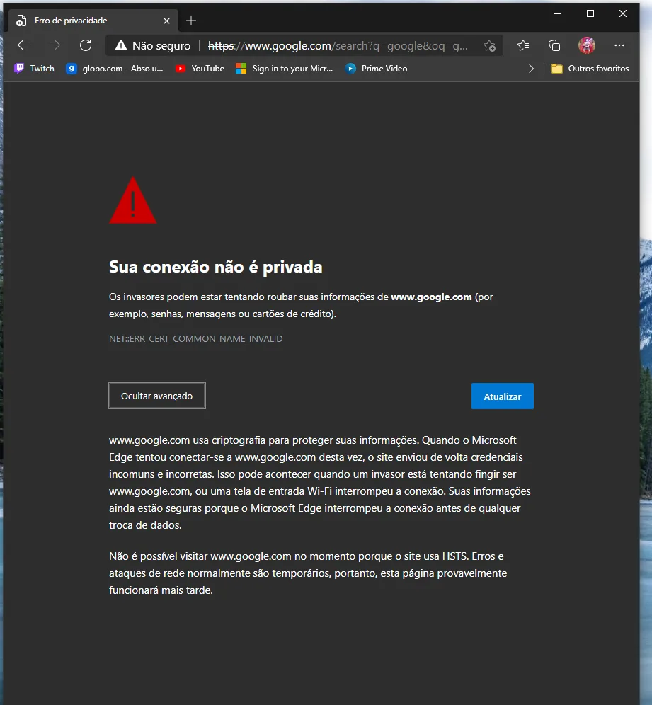 O que é o erro NET::ERR_CERT_COMMON_NAME_INVALID