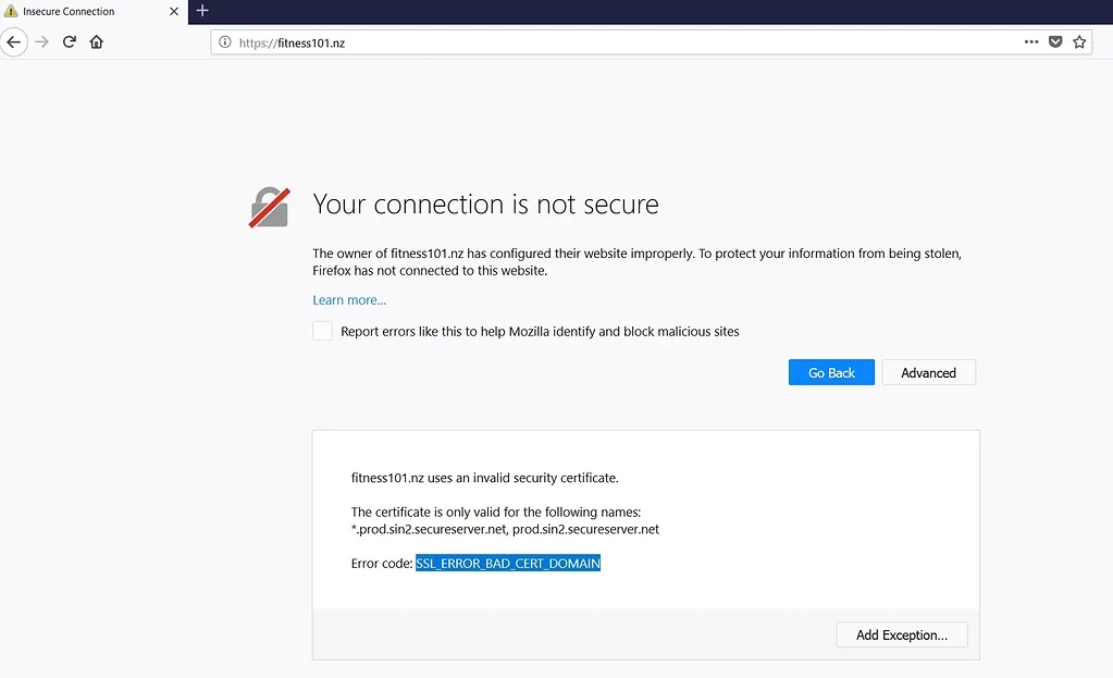 - Mozilla Firefox: SEC_ERROR_BAD_CERT_DOMAIN