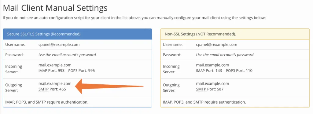 Nesta página, você vai encontrar o nome de usuário, o URL e o número da porta SMTP do servidor de saída. Esses são os detalhes que você precisará fornecer ao seu aplicativo.