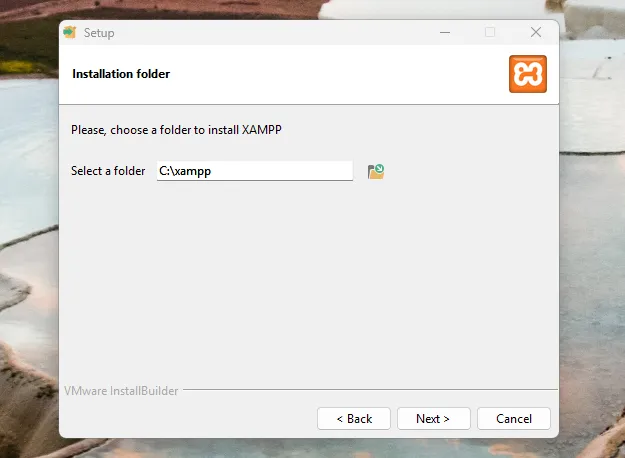 Ainda nesta fase da instalação você vai selecionar a pasta do seu sistema que deseja salvar os arquivos do XAMPP: