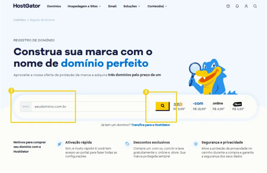 Como registrar e configurar o seu domínio na HostGator