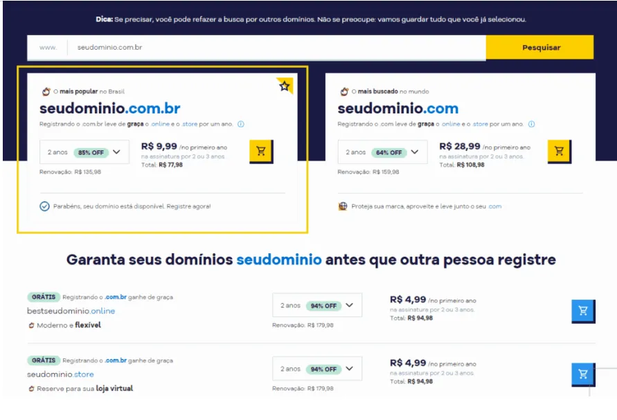 O .org, por outro lado, tem maior disponibilidade e custo similar, sendo uma boa alternativa para quem quer manter o nome original da marca.