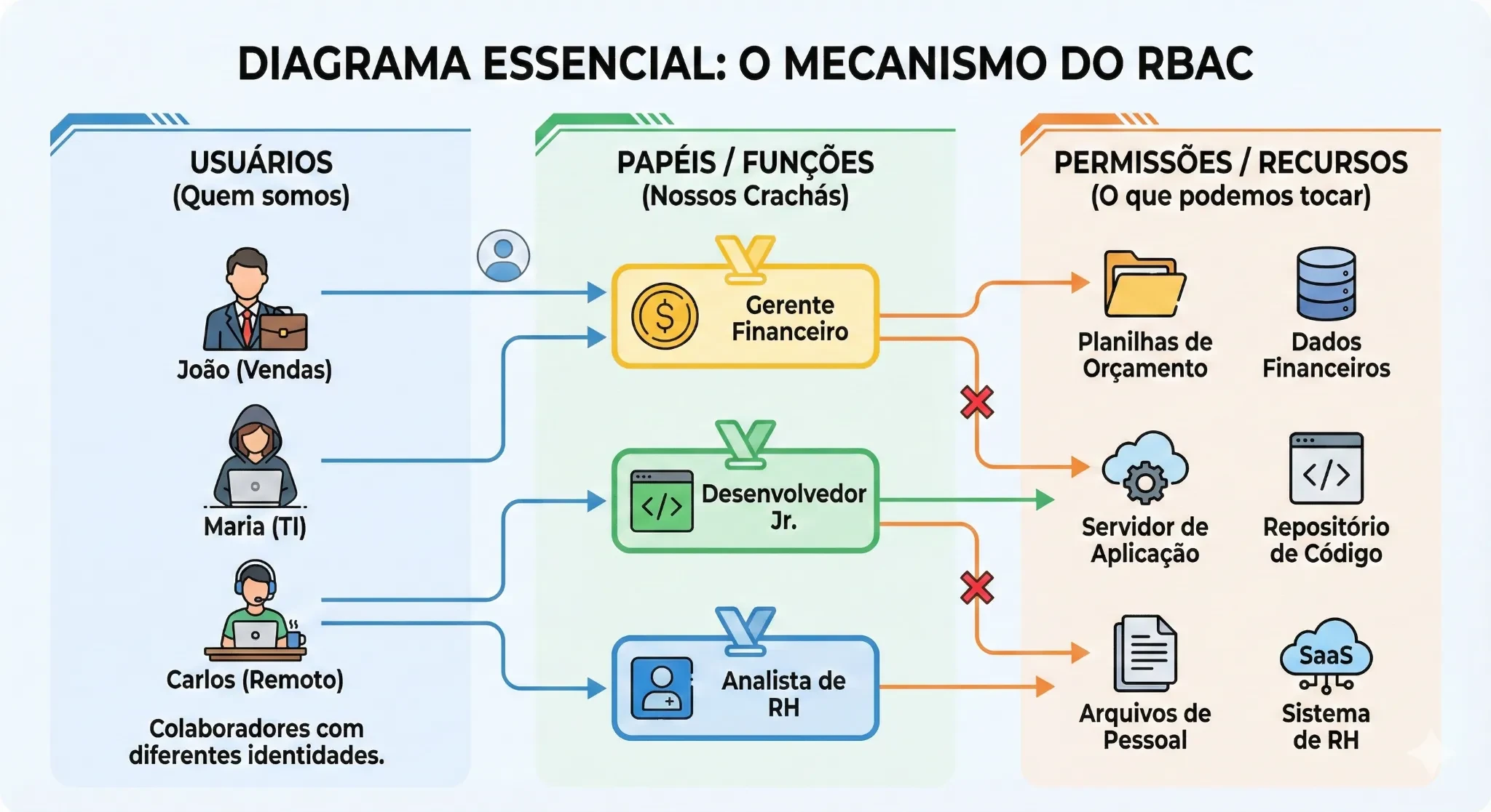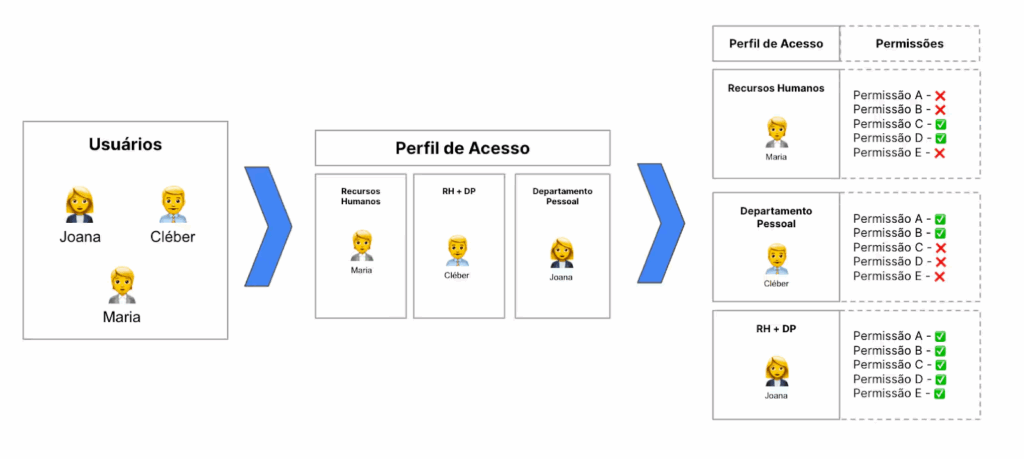 Esse mapeamento permite definir regras claras e evita que usuários recebam permissões excessivas.