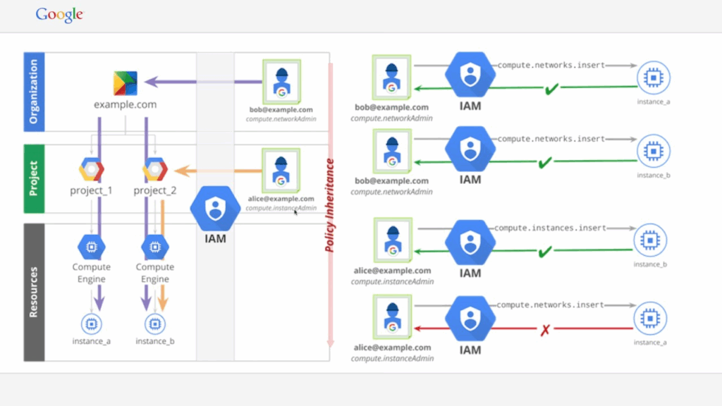 Google Cloud IAM e Kubernetes RBAC seguem a mesma lógica, fornecendo controle detalhado sobre recursos e namespaces, garantindo a segurança e protegendo o compliance.