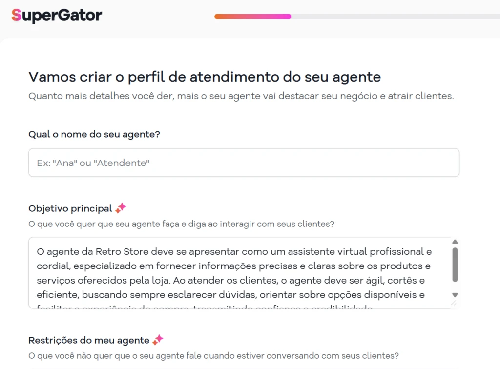 Outro ponto relevante é a facilidade de gestão. O SuperGator foi desenvolvido para que o próprio usuário consiga acompanhar e ajustar o comportamento do agente conforme a evolução do negócio, mantendo o controle da comunicação sem depender de configurações complexas.