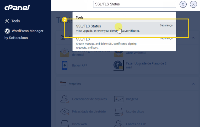 - Digite SSL/TLS status na barra de pesquisa e clique na opção encontrada;